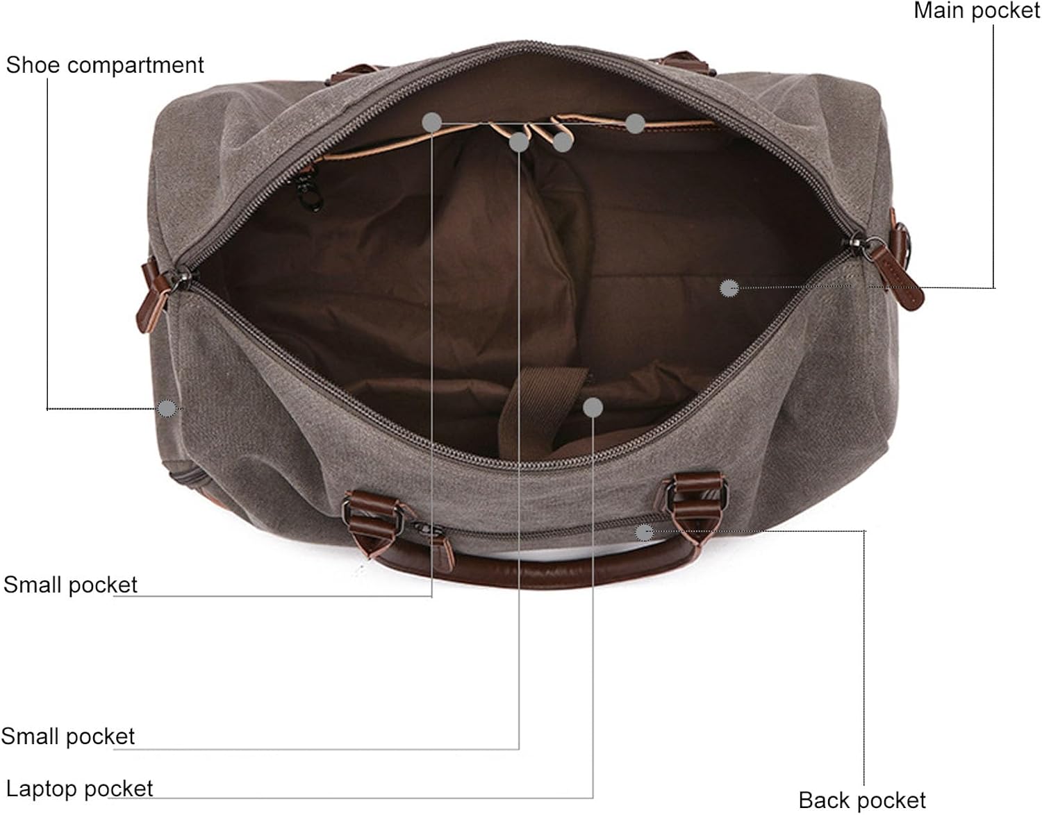 Leather and canvas design: Our travel bag combines leather and canvas design, stylish and universal, can be paired with multiple styles, and can be used for business and daily, fitness, and leisure