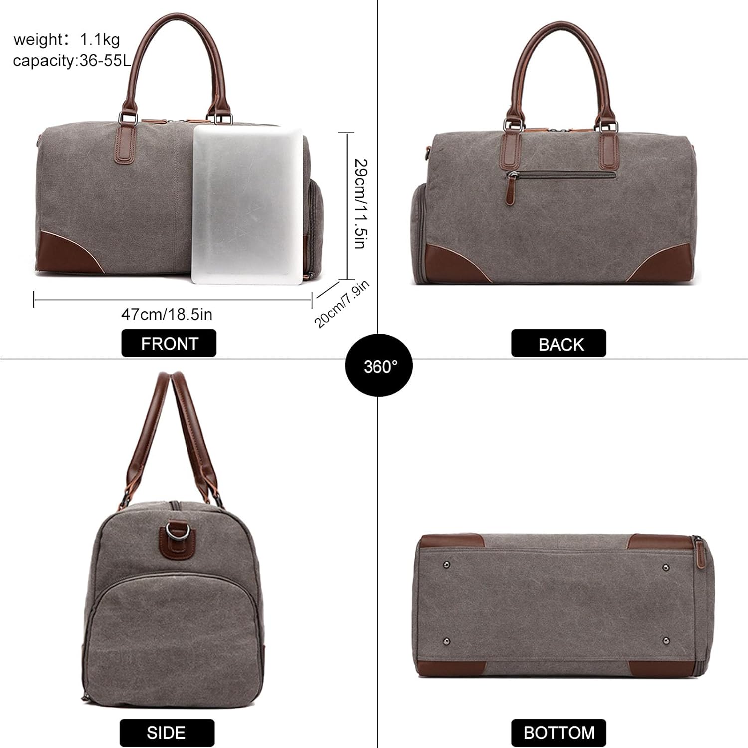 1Pcs 55L Large Sports Travel Duffle Bag for Women/Men,Canvas Leather Weekender Overnight Bag with Shoes Compartment Adjustable shoulder strap