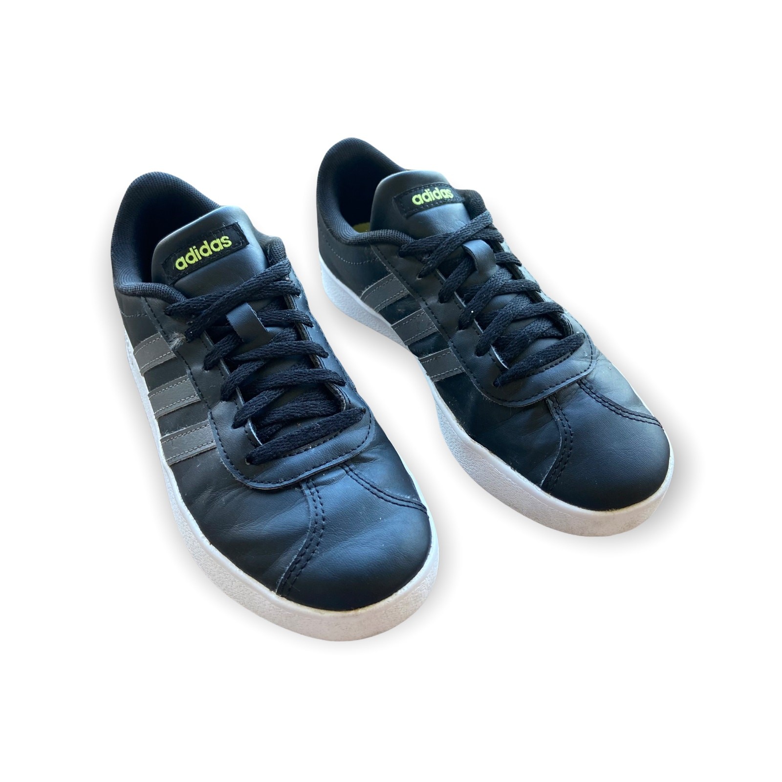 adidas Boys Girls Shoes Size 4 VL Court 2.0 Black Gray 3 Stripes Sneakers Kids