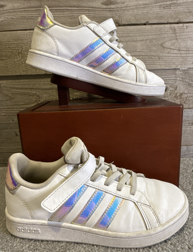 ADIDAS Girl’s Grand Court Iridescent 3 Stripe White Sneakers Size US 2.5 UK 2