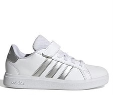 Adidas Kids Grand Court 2.0 Strap Lace Shoes Trainers – Size Uk 10k Silver White