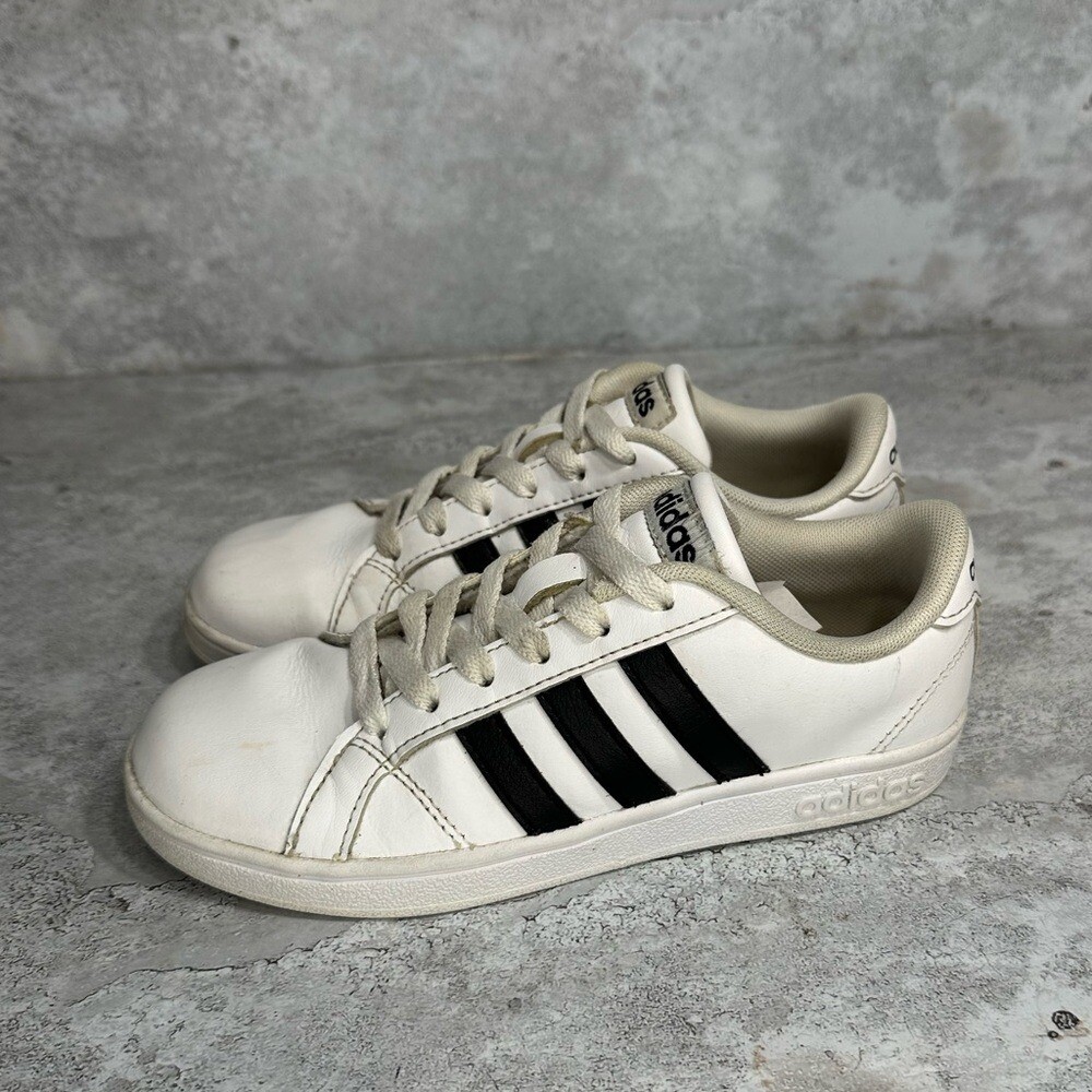 Adidas Neo AW4299 Boys Baseline K Sneaker Size 1Y White Leather Black Shoes