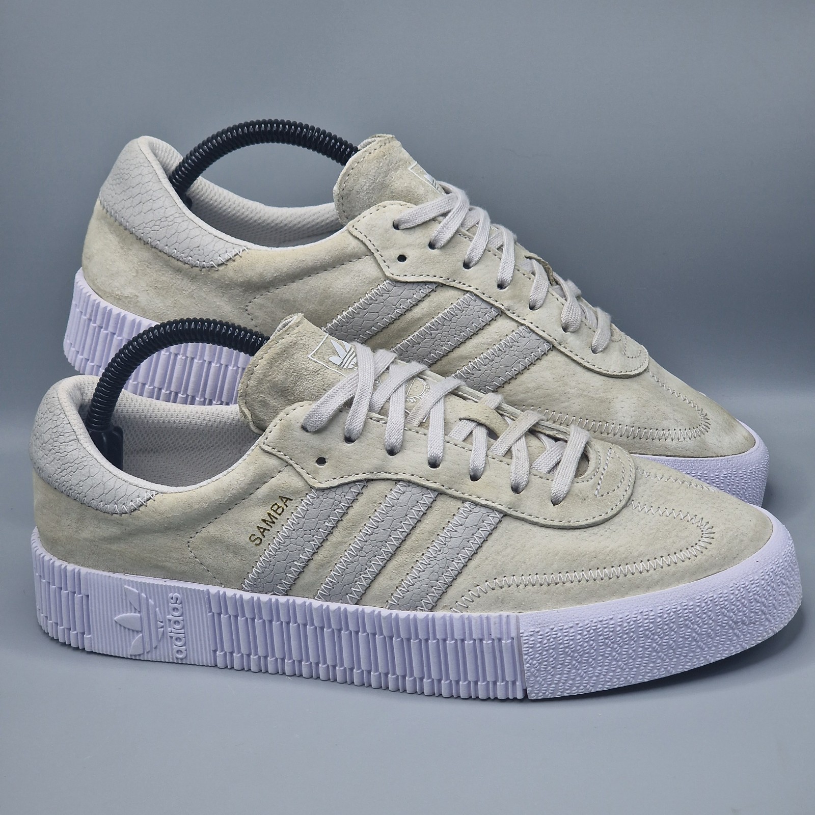 Adidas Originals Sambarose Grey White Suede Trainers Size UK 8
