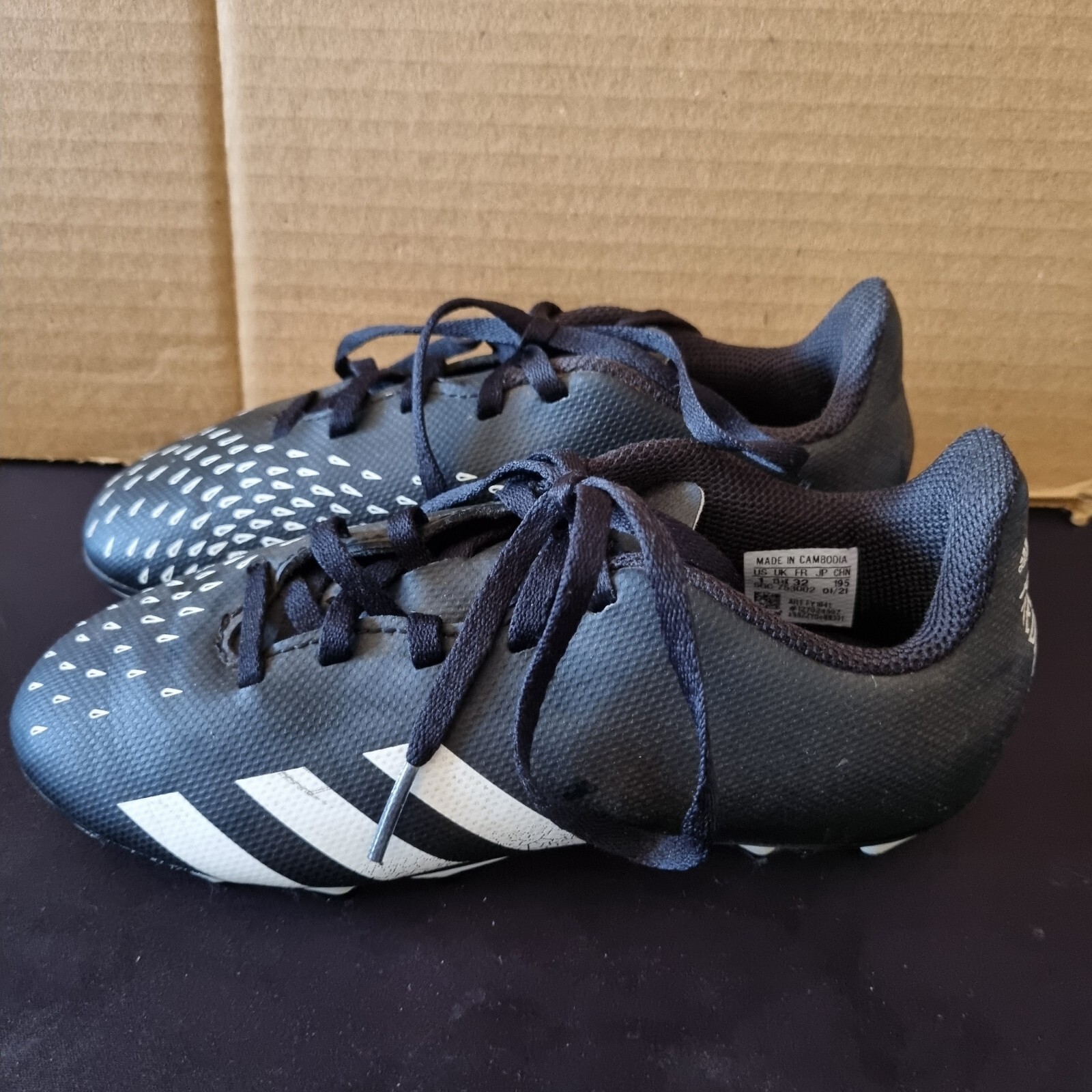 Adidas Predator Freak .4 Boys Size 1 Soccer Cleats Black, White FY1041