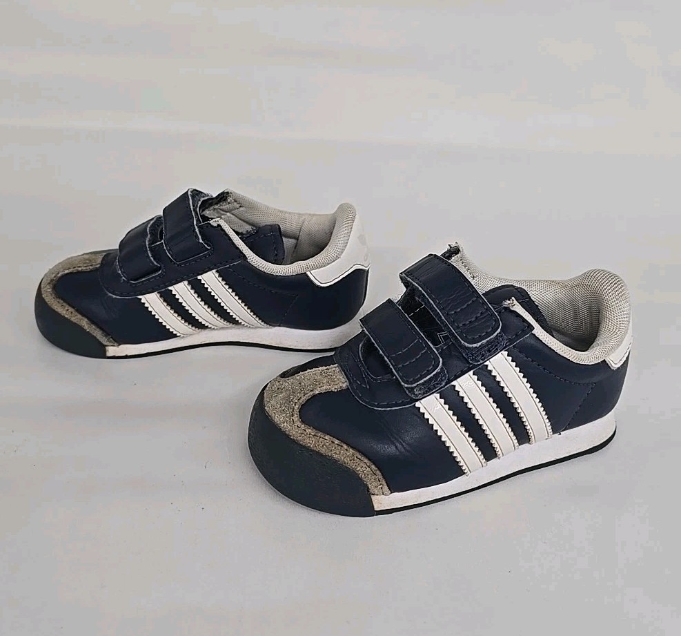 Adidas Samoa Toddler Sneakers Shoes Navy Blue White Hook Loop Closure Size 7 US