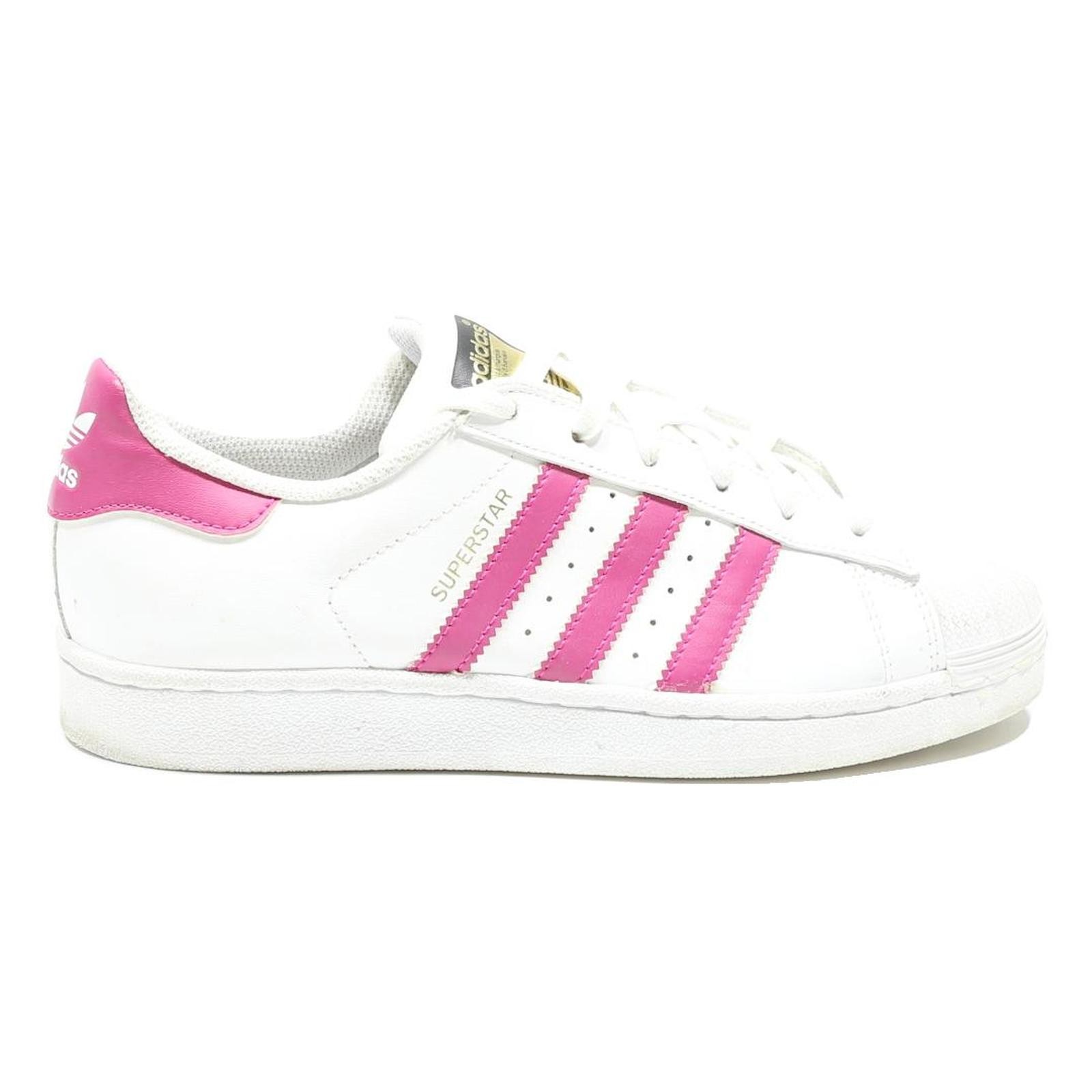 ADIDAS Superstar Girls Lace-Up Trainers White & Pink Leather UK 4.5 Fashion