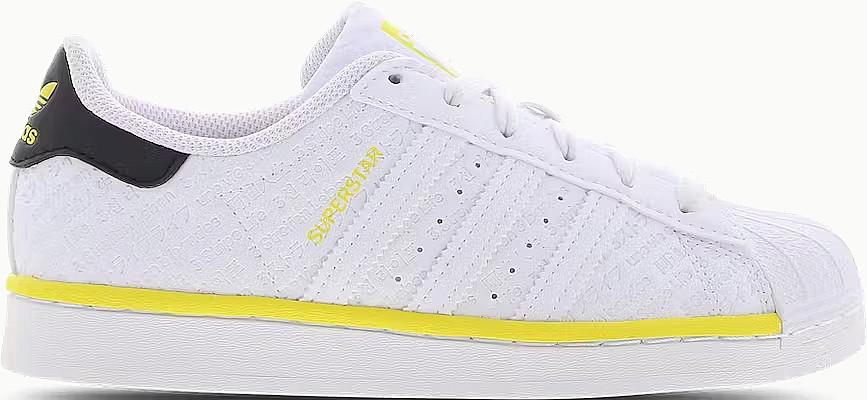 ADIDAS SUPERSTAR J WHITE YELLOW ATHLETIC RUNNING SHOES 6.5Y = Size 7.5 WOMENS