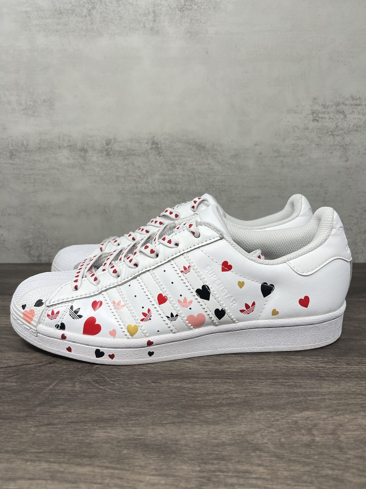 Adidas Superstar Shoes Womens 8.5 White Heart Pattern Valentines Day FV3289
