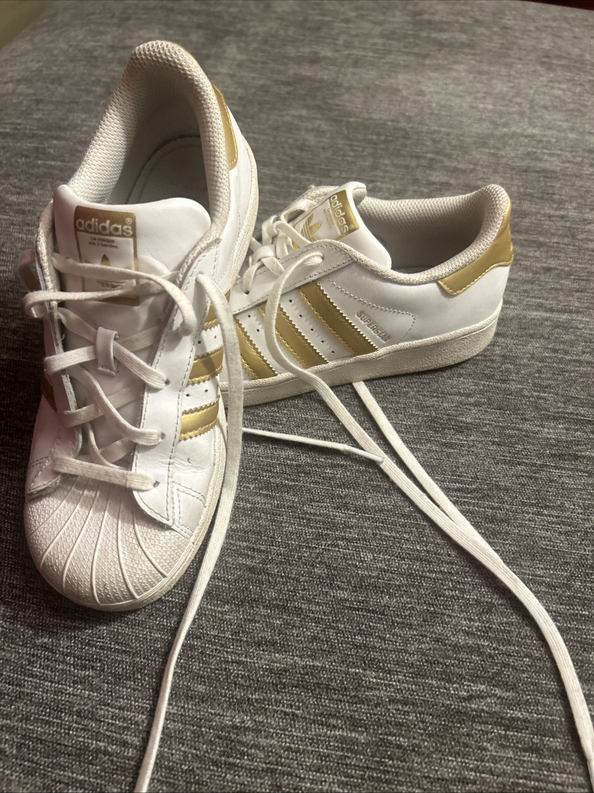 Be the first to review “Adidas SuperstarSneakers Big Kids Sz 3 White and Gold”