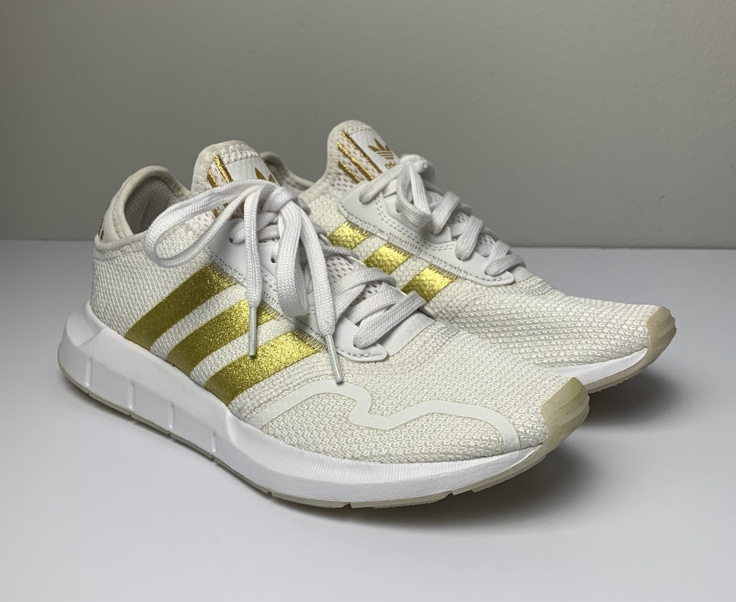 Adidas Swift Run Womens Sz 6 White Gold Athletic Running Walking Shoes Sneakers