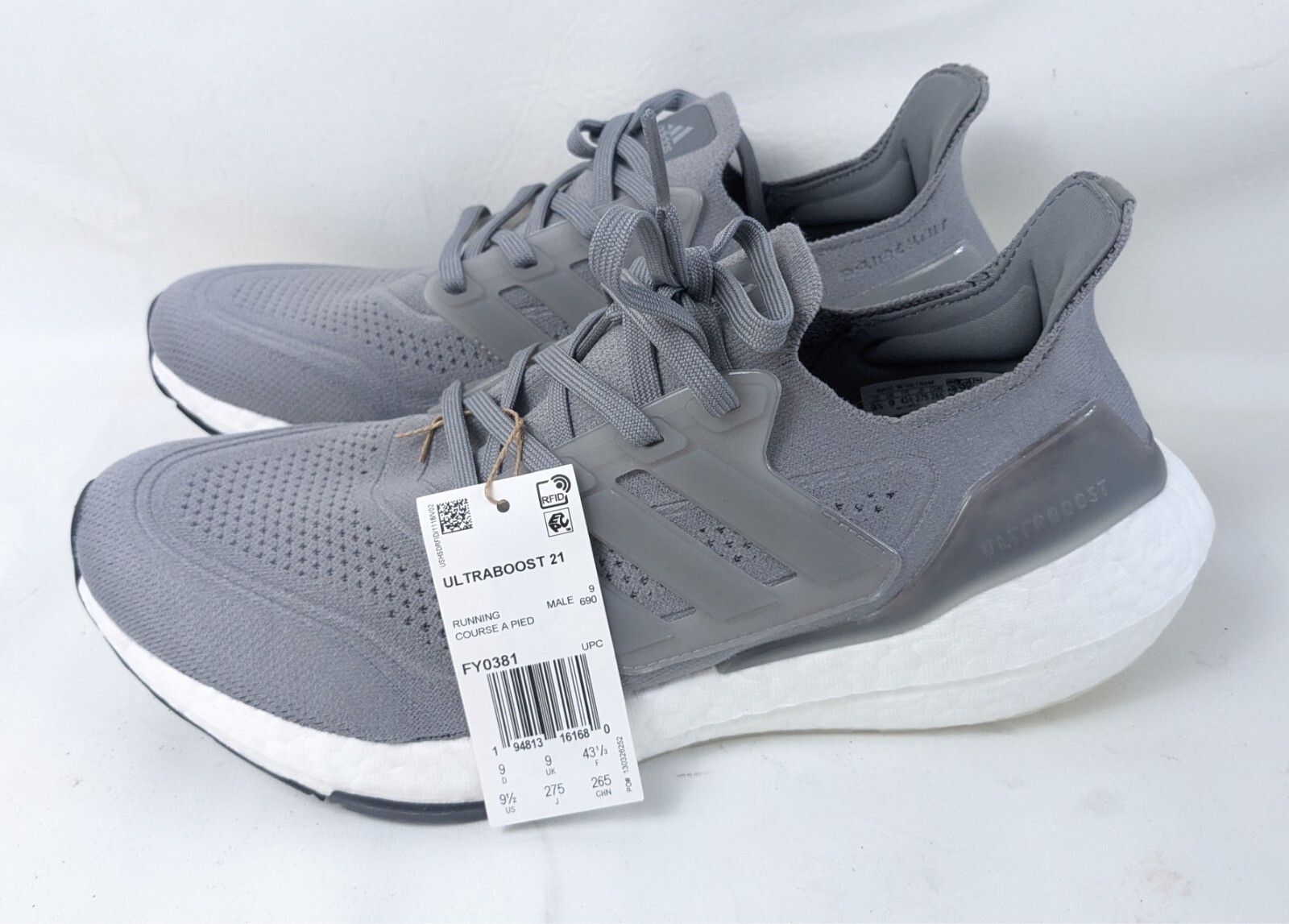 Adidas Ultraboost 21 Running Shoe Gray – FY0381 – Men’s Size 9.5
