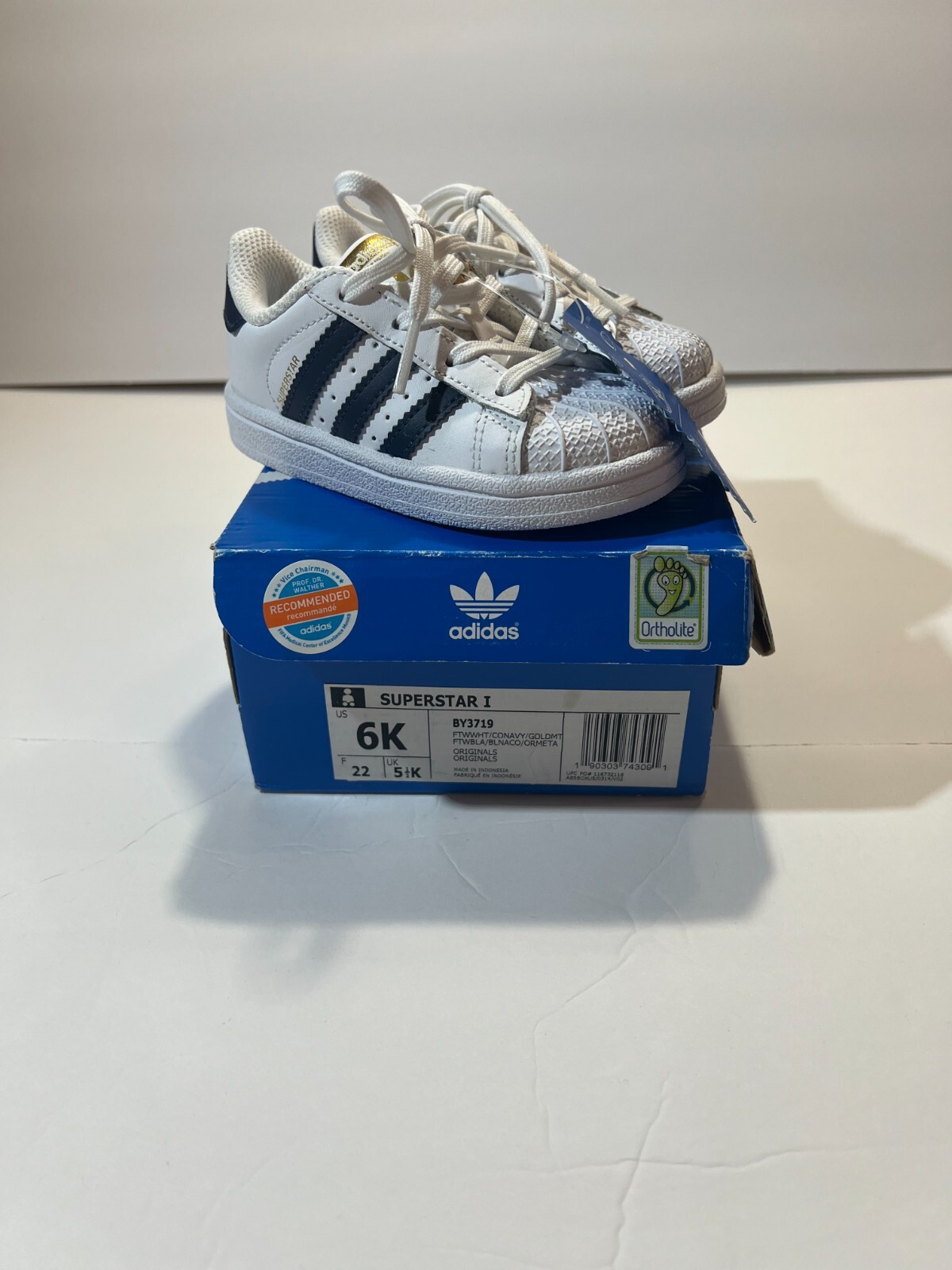 Adidas Unisex Kids White Blue Superstar I Lace Up Low Top Sneaker Shoes Size 6 K