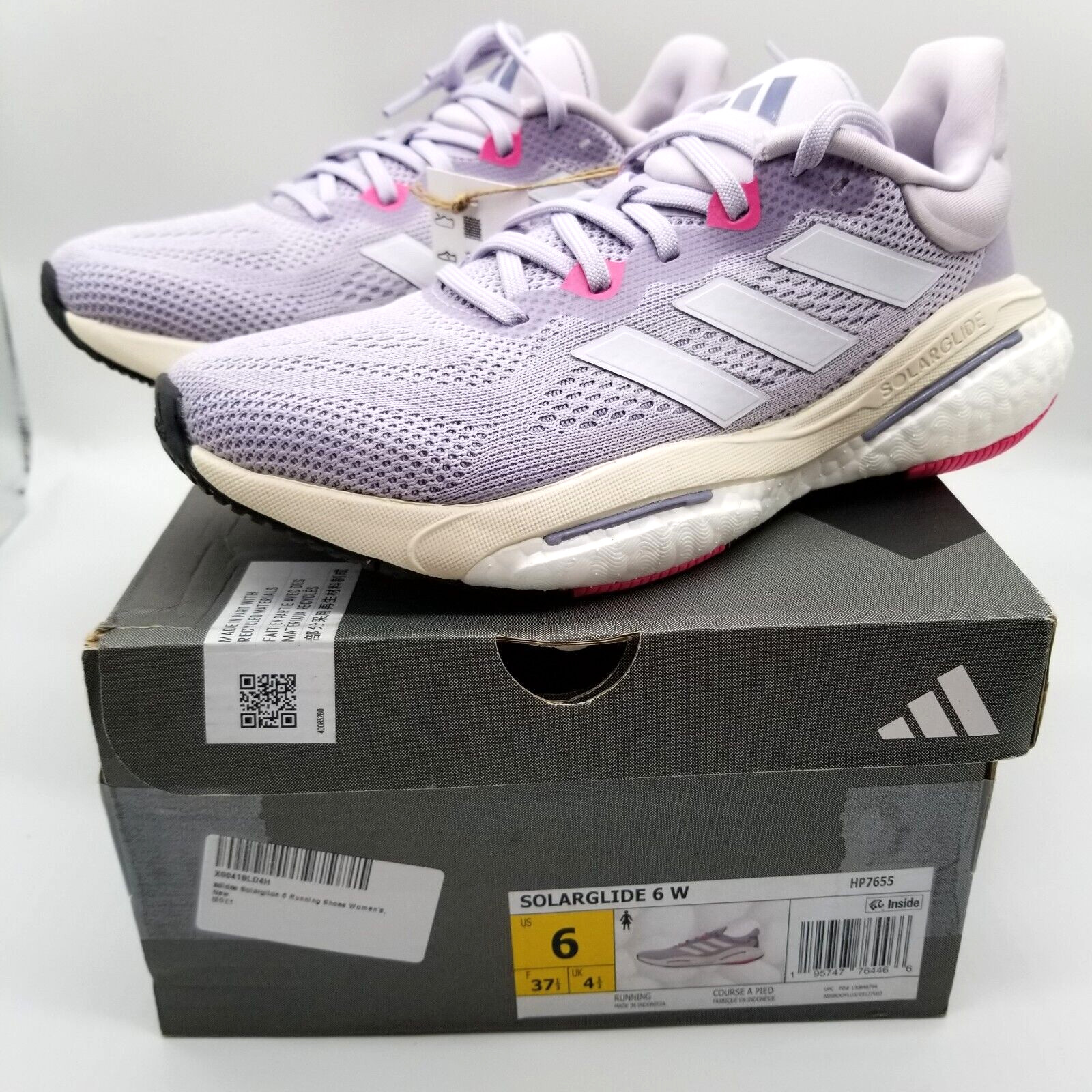 adidas Women Solarglide 6 Running Shoes Sz 6 Lilac Low Top Sneakers