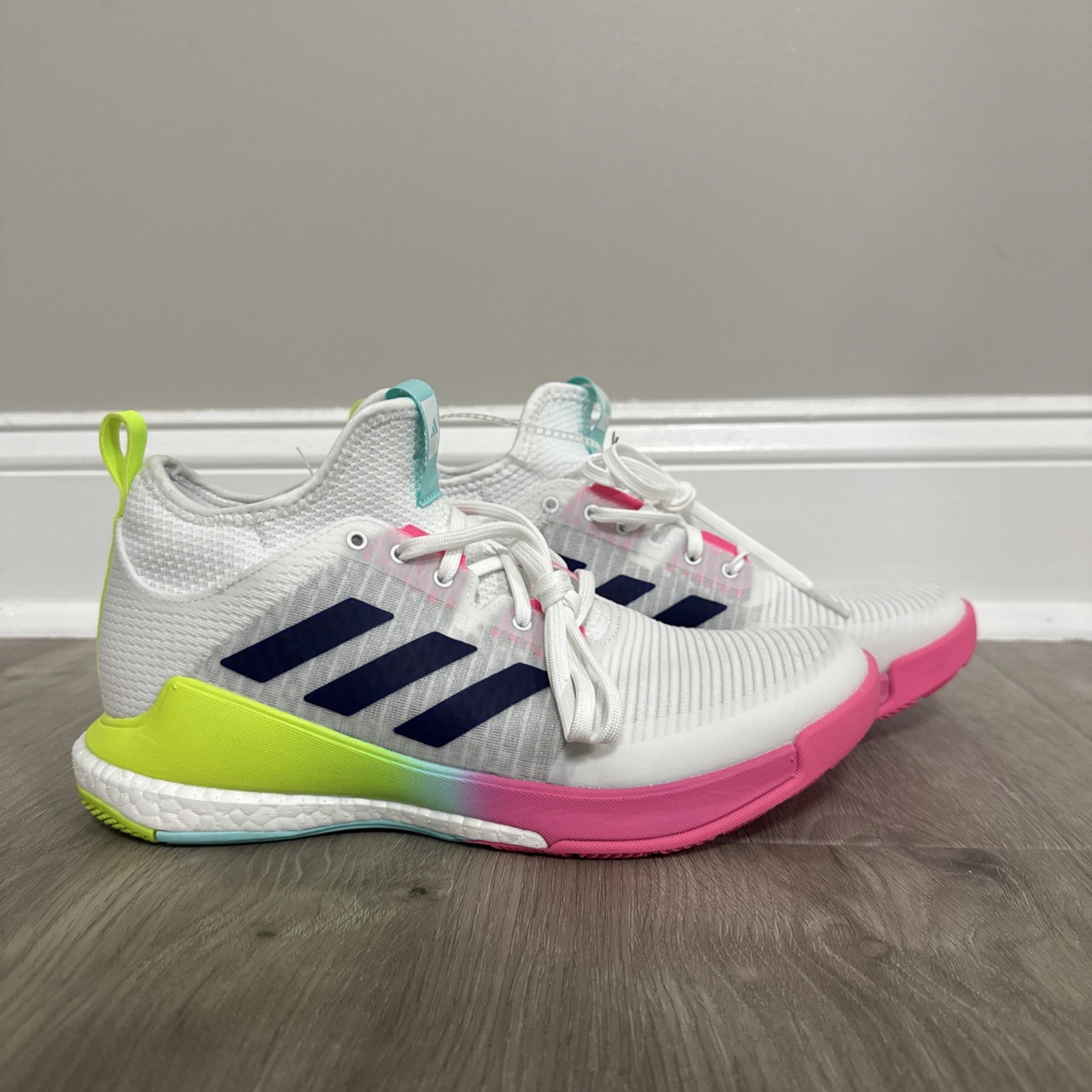 Adidas Women’s Crazyflight Mid Volleyball Shoes White Pink HP3337 Size 5.5
