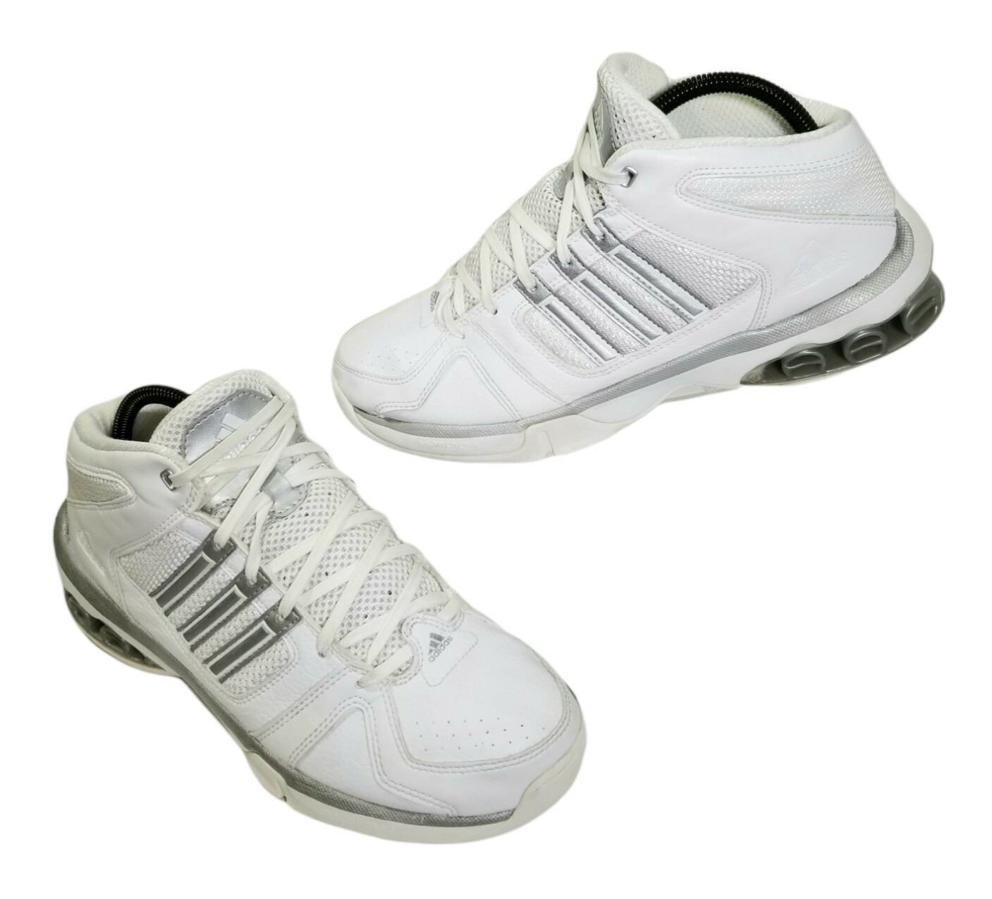 Adidas Womens Size 9 White Silver Mid Top Lace Up Athletic Sneaker Shoes 233458