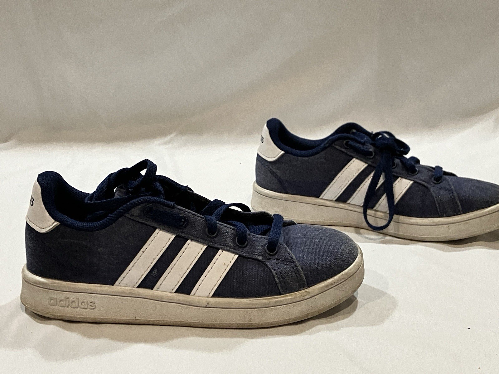 Boys Youth Adidas Grand Court Navy Blue Canvas Athletic Tennis Shoes US Size 12K