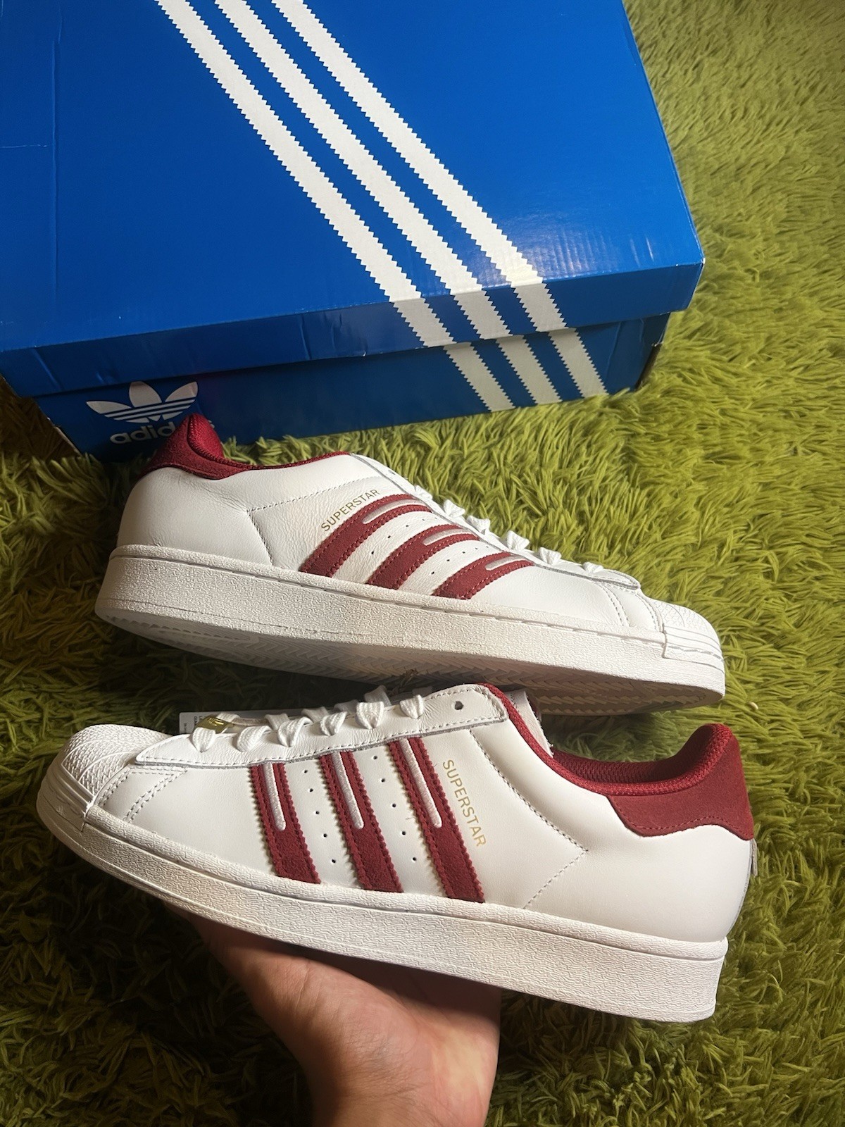BRAND NEW Adidas Original Superstars Embroidered Red Stripes White Size 11m DS