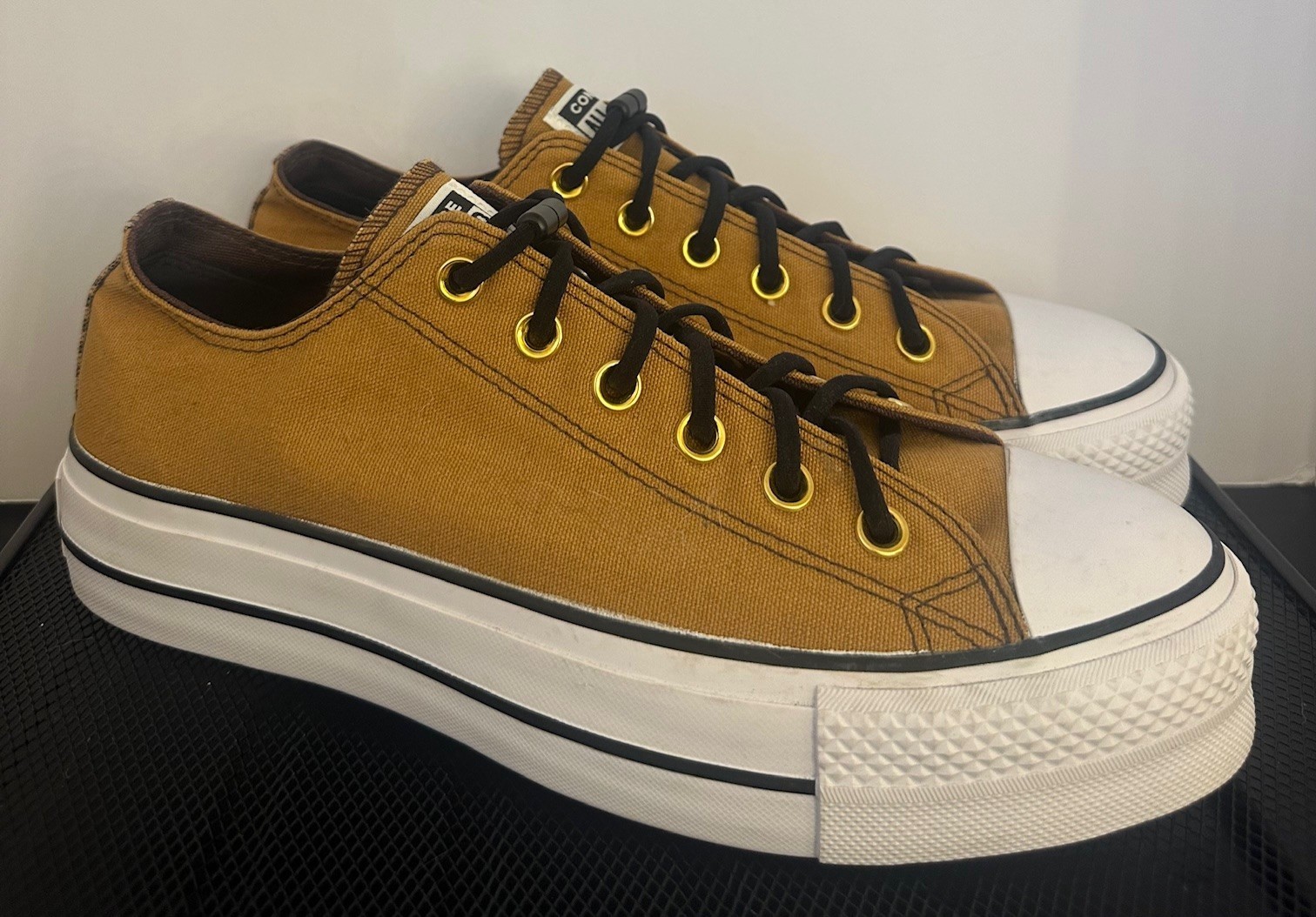 Converse All⭐~by You~ Platform Low Men’s 8/Women’s 10 Golden Brown Plaid Heel