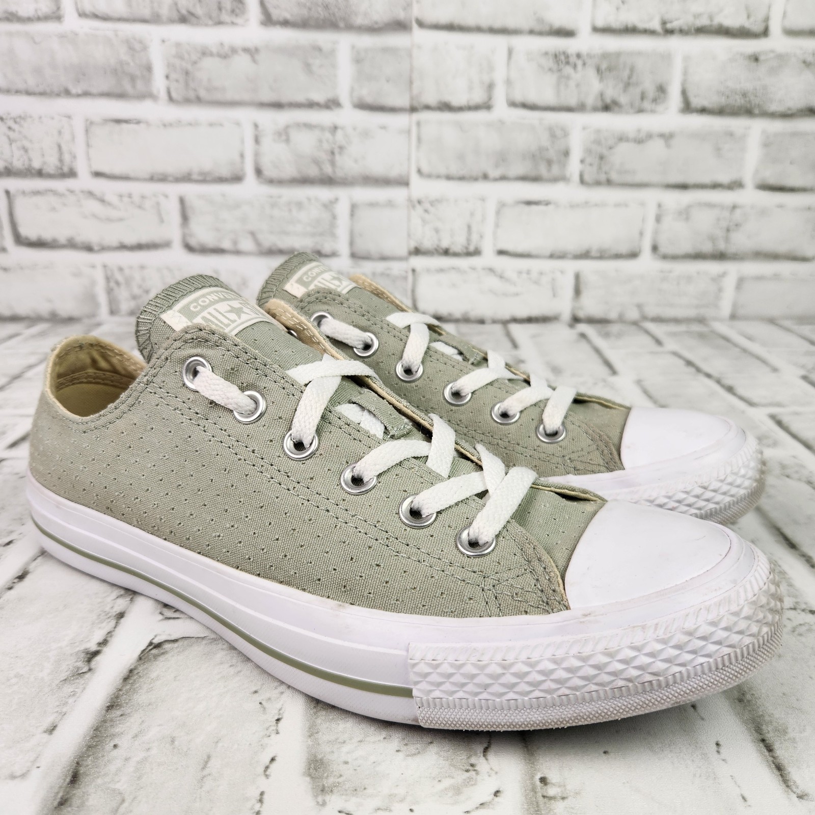 Converse All Star Perforated Ox Women’s Sz 10 Green Casual Classic Shoes Canvas