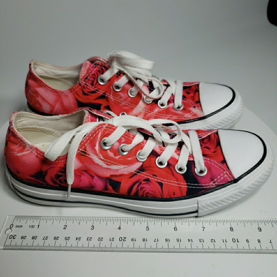 Converse All Star Women Red Pink Roses, Low Top Canvas Shoes Sneakers Women’s 7,