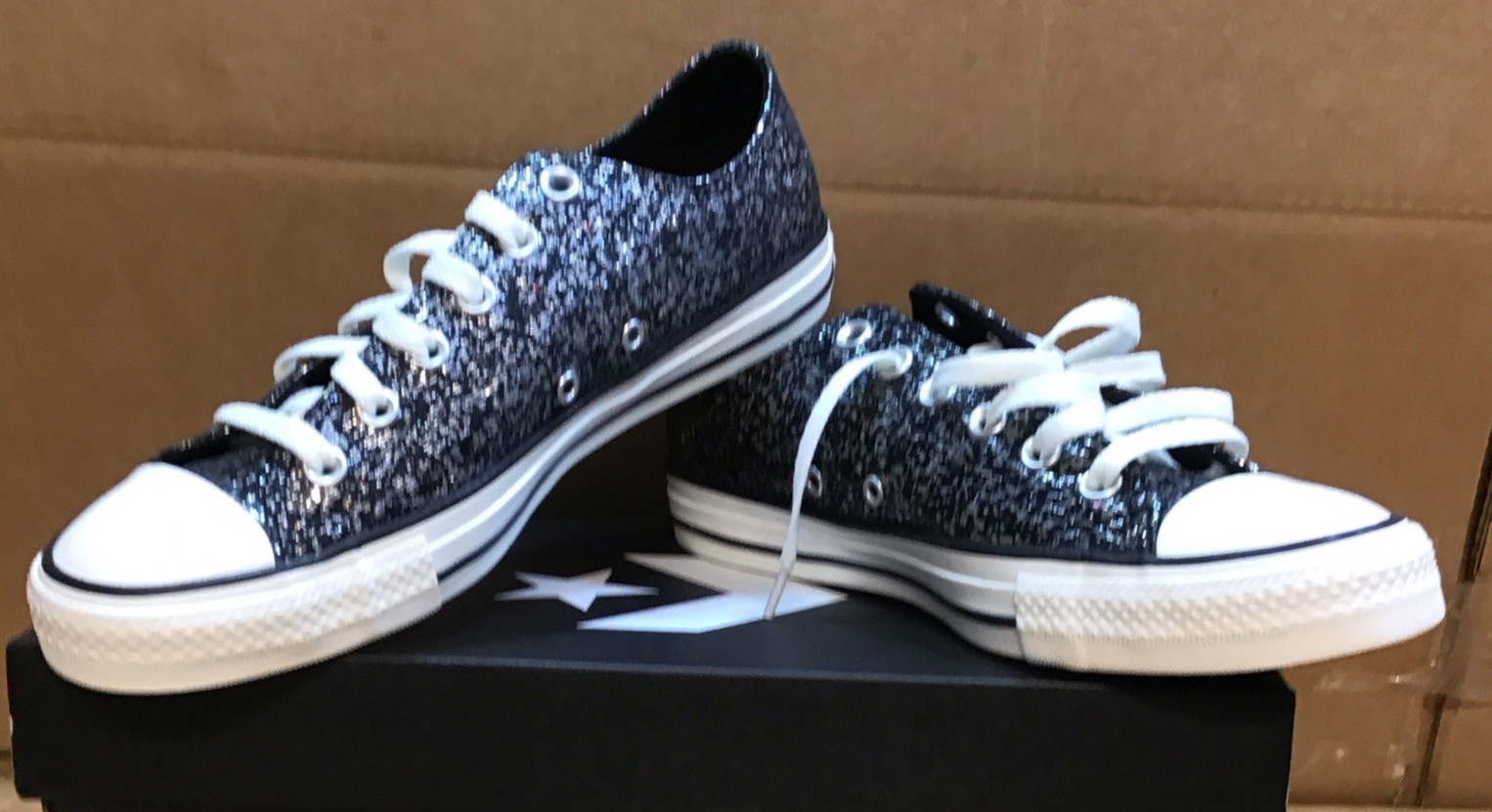 Converse Chuck Taylor All Star A11138C Black Glitter Low Top Womens Shoes R2