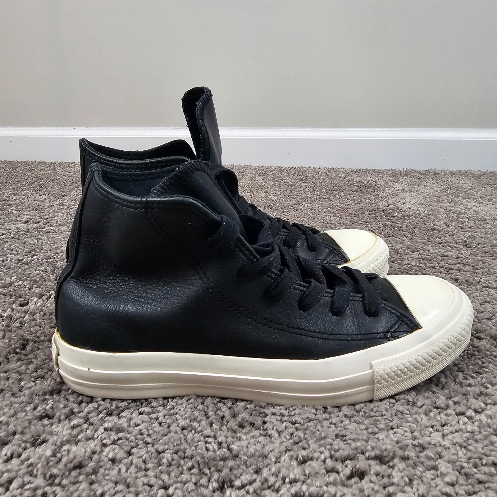Converse Chuck Taylor All Star High Top Shoes Womens 6.5 Black Leather Sneakers