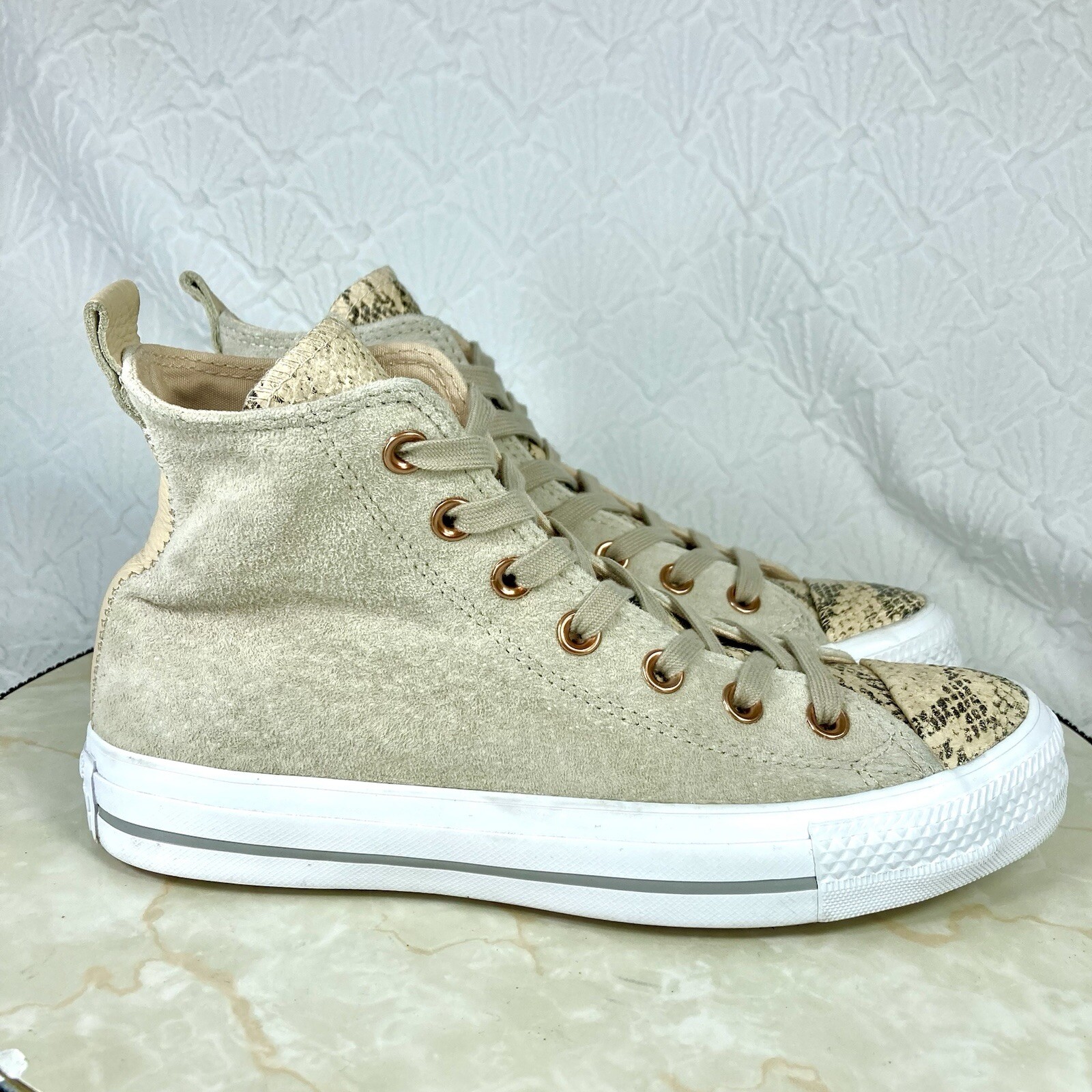 Converse Chuck Taylor Papyrus Hi Top Sneakers Sz 7 Tan Leather Snakeprint Shoes