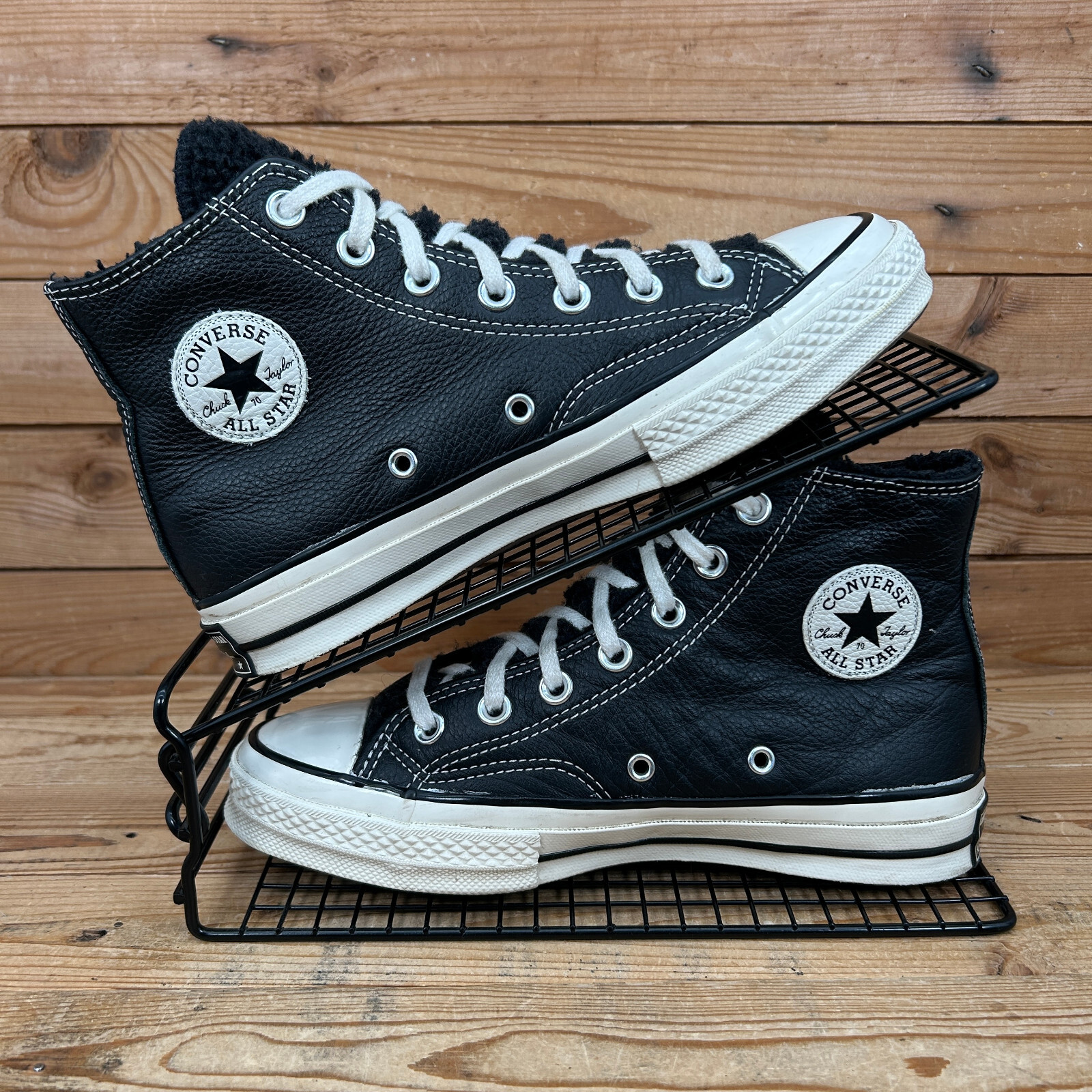 Converse Trainers Womens Size UK 4 Chuck 70 Utility Black Leather Sherpa Shoes