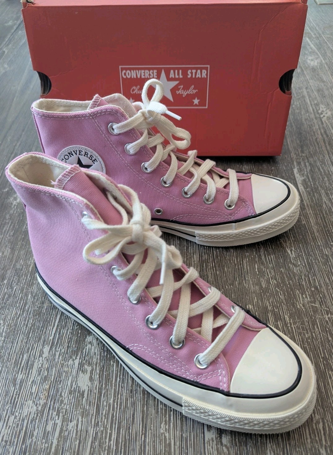 Be the first to review “Converse Women’s Unisex Size 7 Chuck Taylor 70 Amber Pink Canvas Sneakers Shoes”