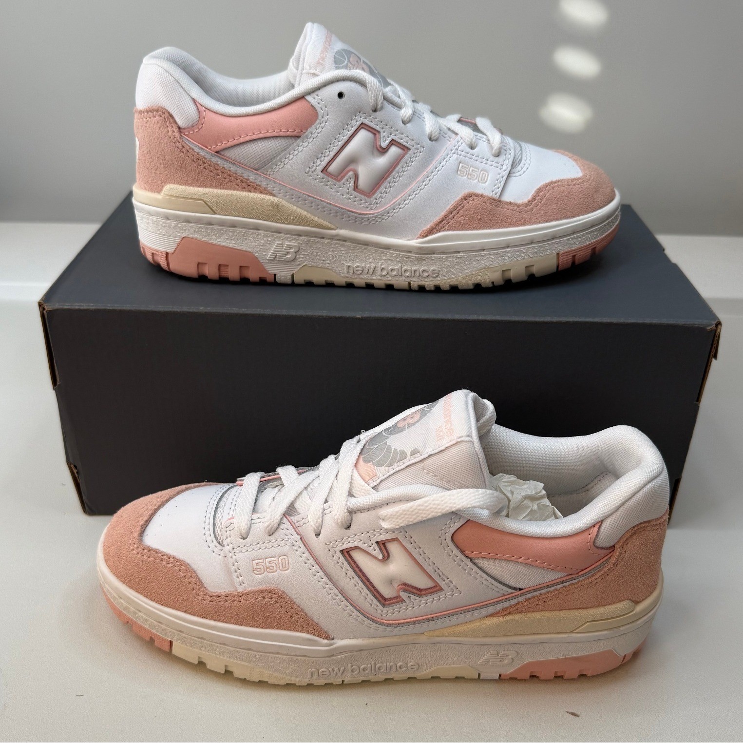 New Balance 550 White Pink Sneakers GSB550CD Youth Size 5.5 New With Box