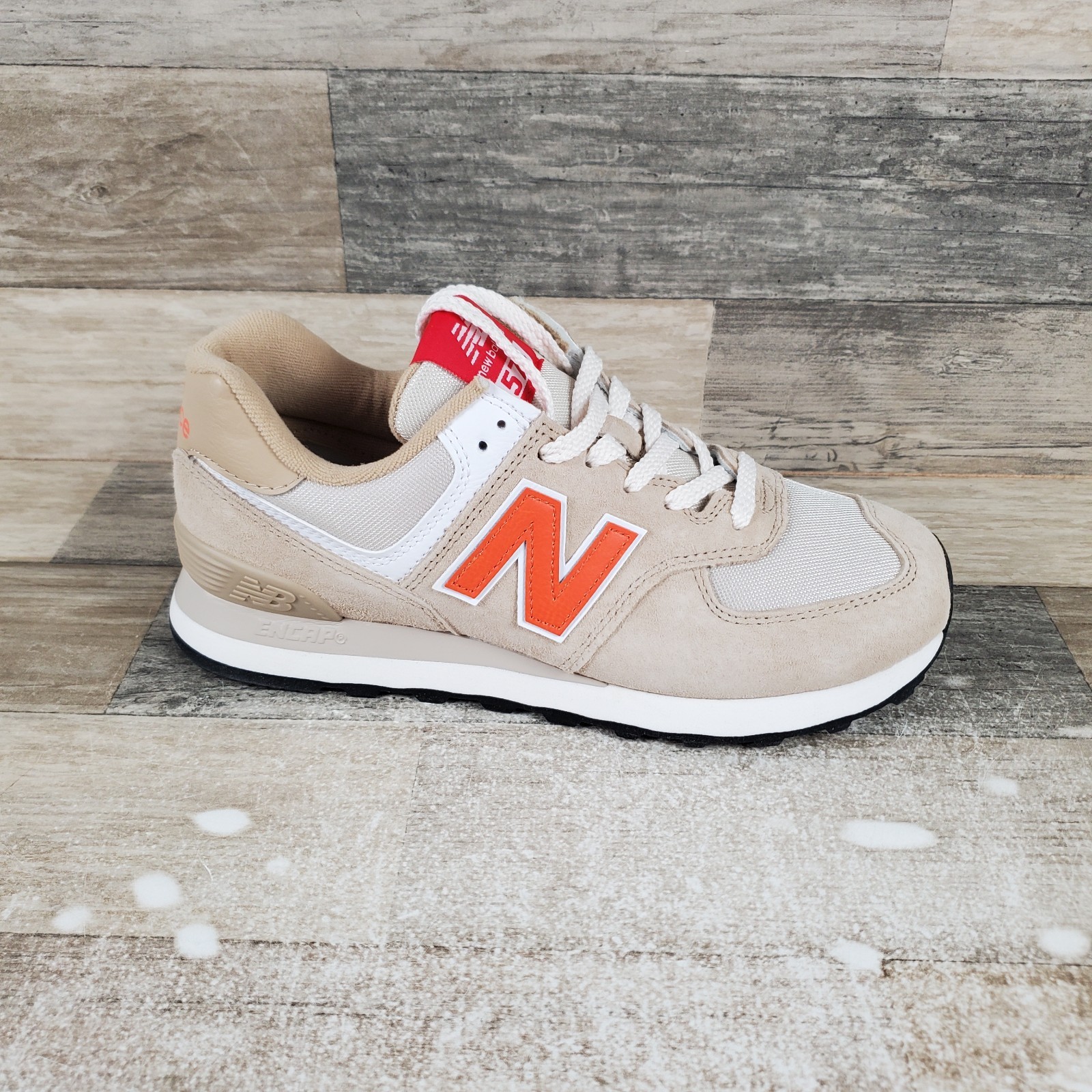 New Balance 574 Men Shoes Sz 6.5 Beige Orange Lace-Up Round Toe Low Top Sneakers