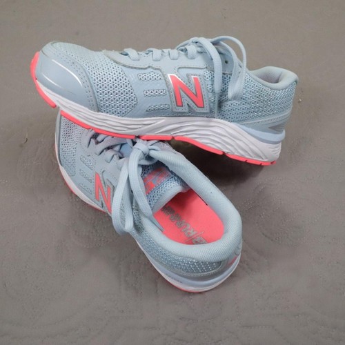 New Balance Running Shoes Girls Size 3 Blue Pink 680v5 TechRide Xtra Wide Kids