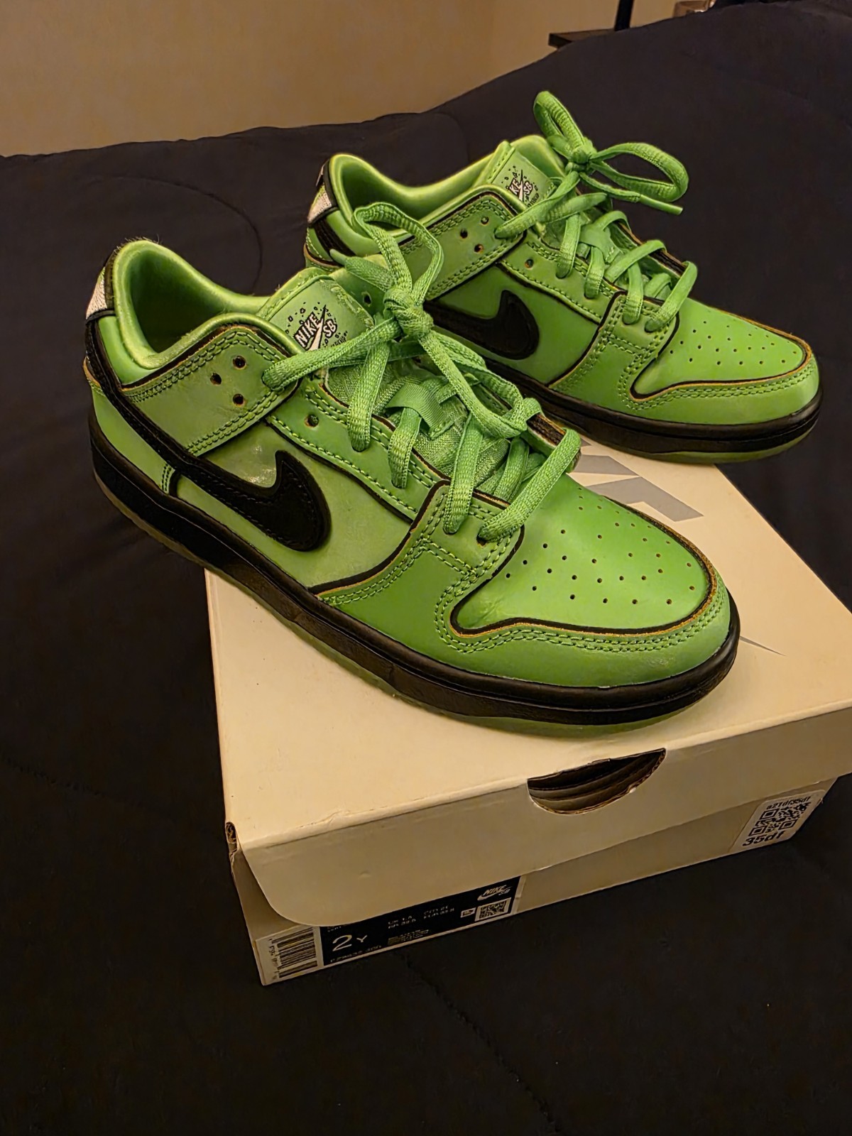 Nike SB Dunk Low Shoes Sneakers Youth Size 2Y Powerpuff Girls Buttercup Green