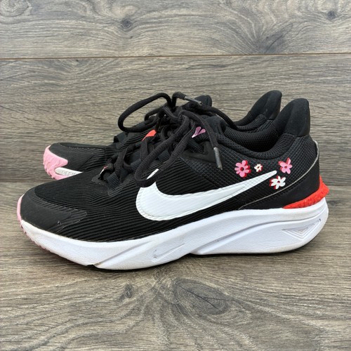 Nike Star Runner 4 GS Kids Running Shoes 4Y Black White Pink Floral FJ8077