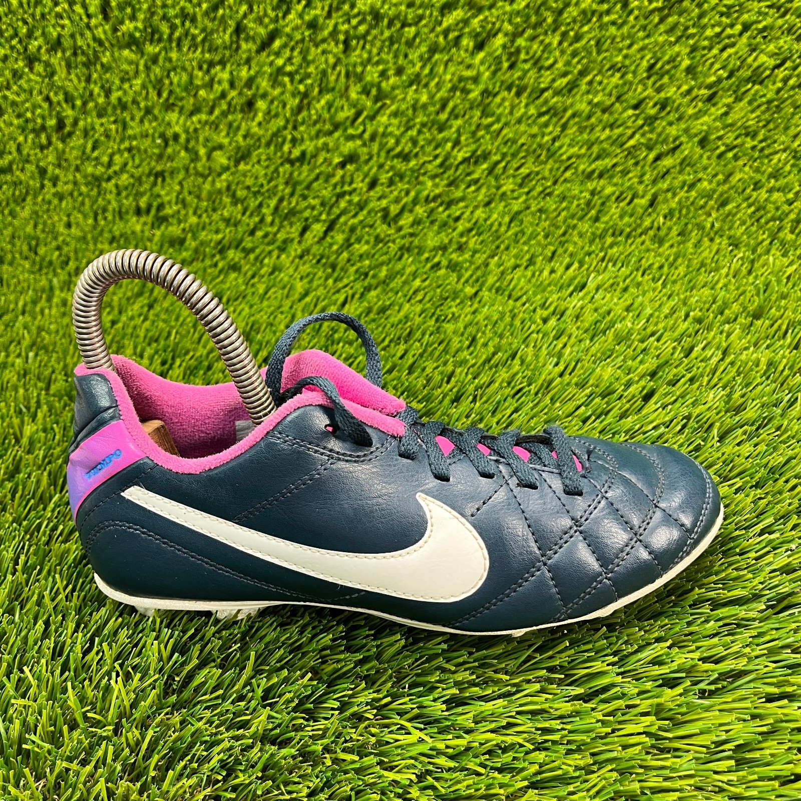 Nike Tiempo Rio Girls Size 3Y Blue Pink White Running Soccer Cleats Shoes