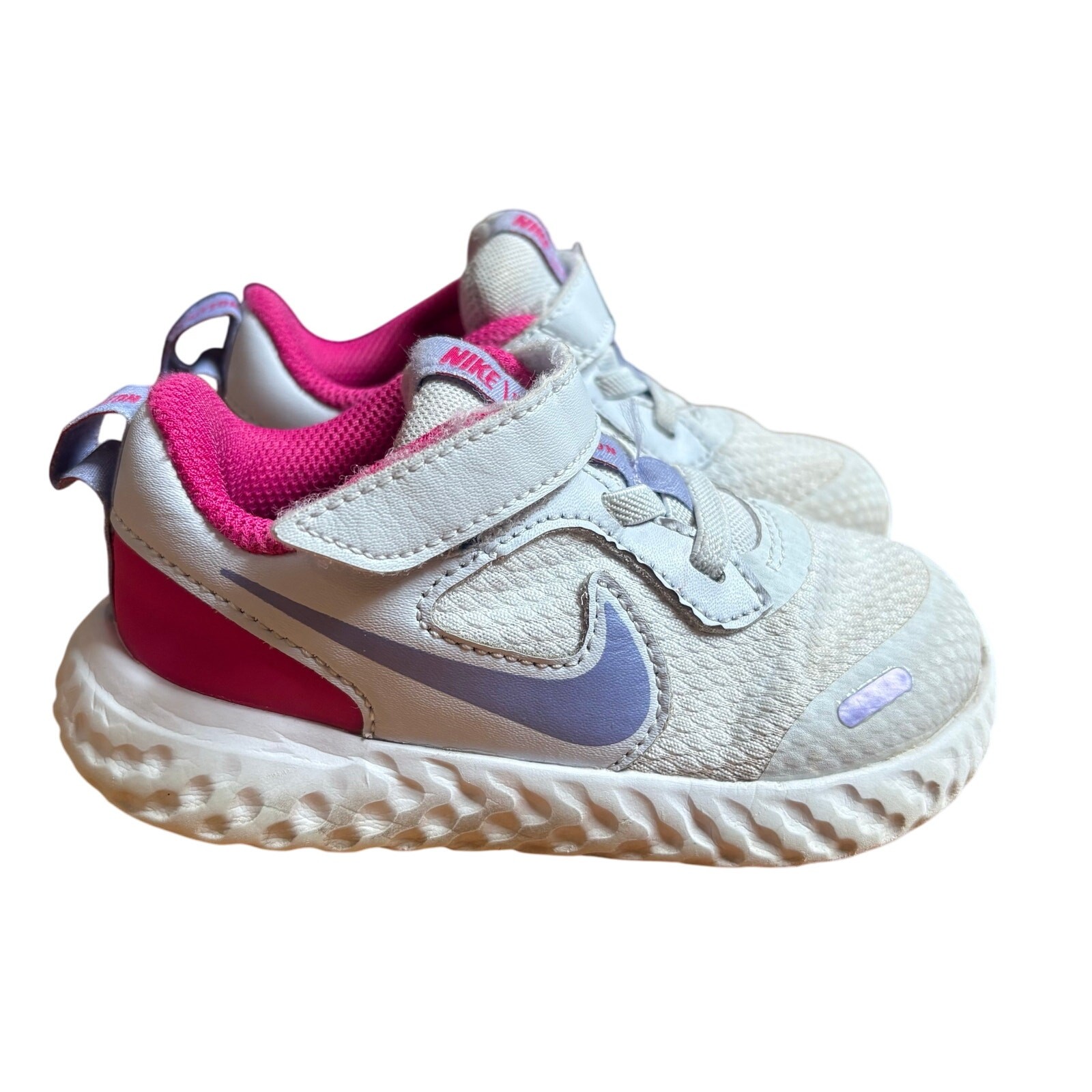 Nike white pink accent slip on elastic lace soft girls sneakers SIZE 8