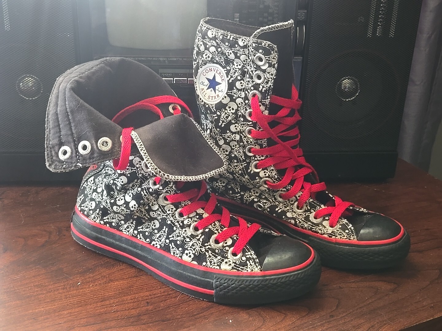RARE CUSTOM CHUCK TAYLOR ALL STAR CONVERSE SKULL SKELETON LOVE ME DEAD SHOES