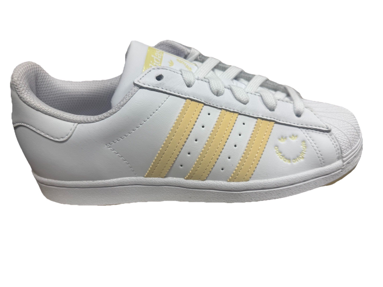 Size 7- adidas Superstar White Easy Yellow W