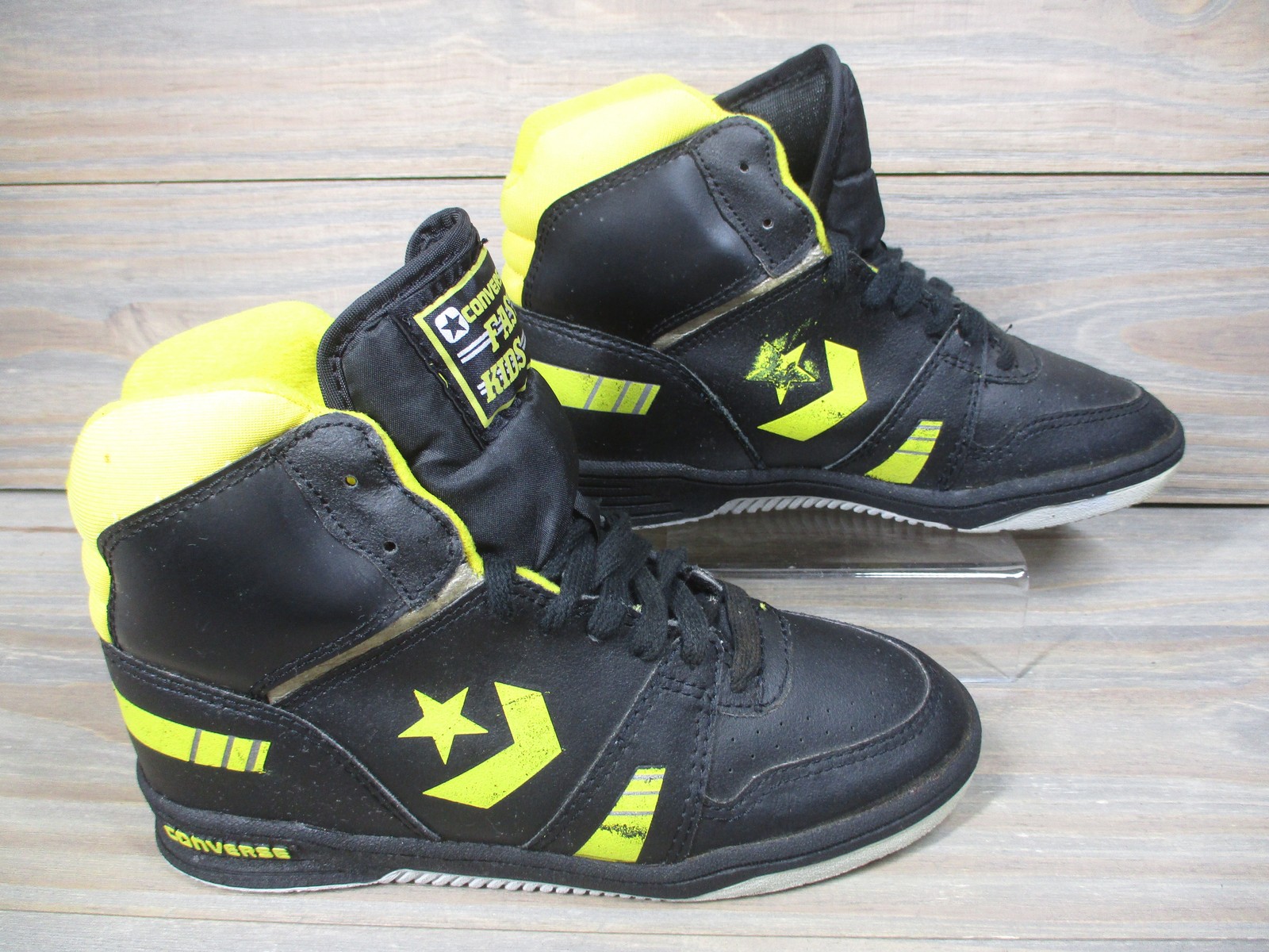 Vintage Converse Fast Kids Shoes Boys Size 4 Black Yellow High Top Sneaker 90s