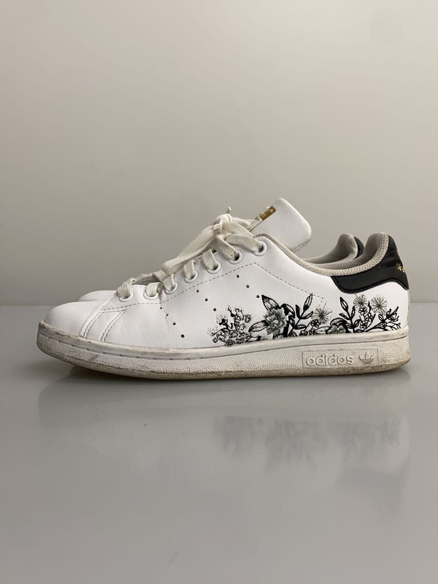 Women 6.5US Adidas Low-Cut Sneakers/Wht/Leather/Gv9977/Flower Embroidery